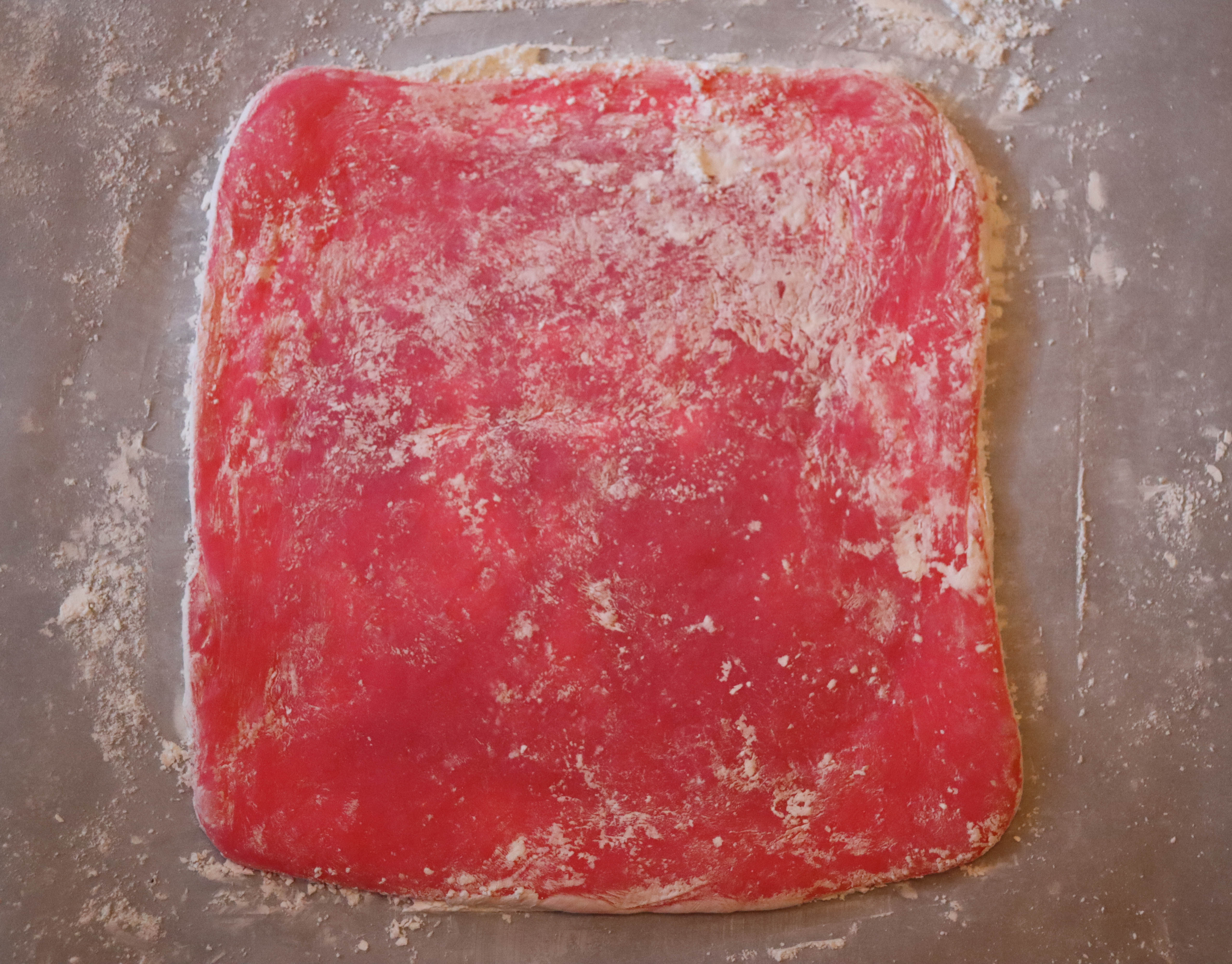 Tip: Before using the rolling pin, use a pastry brush to spread the corn starch evenly on top of the dough. Otherwise, if you just ‘sprinkle’ the flour lightly, your rolling pin might stick to the dough (happened to me)!