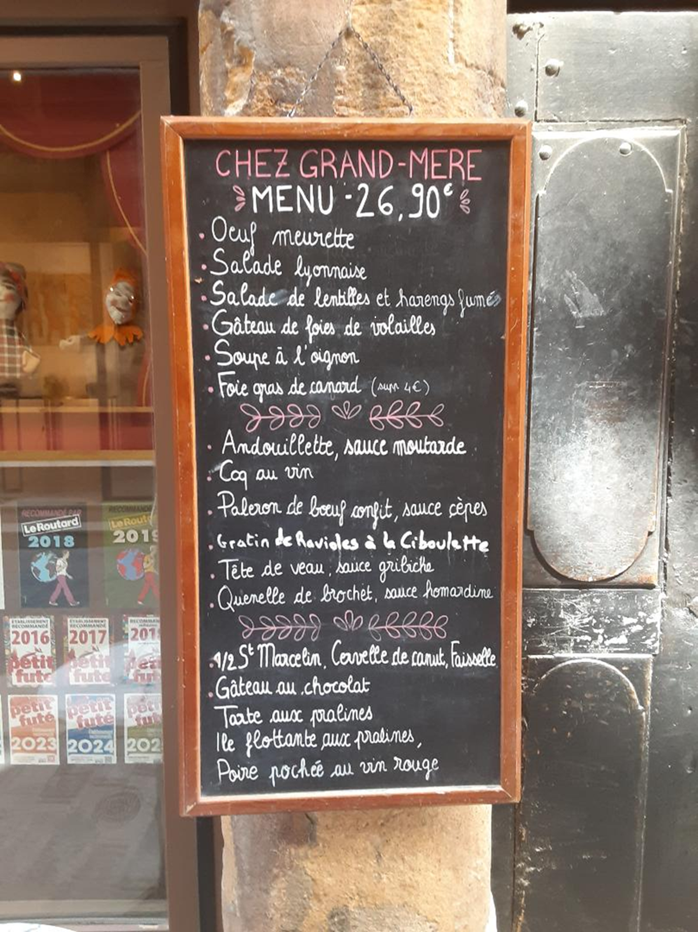 Our favorite bouchon in Lyon was Chez Grand-Mère (Grandma’s home) located in the old section of the city (le Vieux Lyon). Any restaurant with that name has got to be good, right?